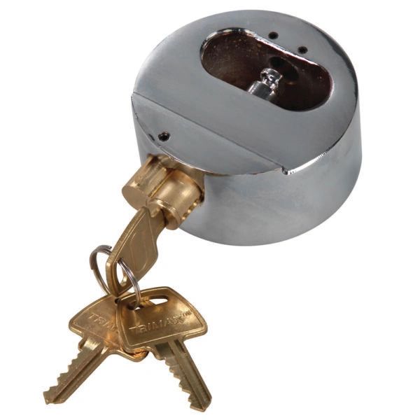 Locking a trailer can mean a lot of different things, and Trailer Tech has all of them. A coupler lock will prevent anyone else from hooking up to your trailer. A wheel lock will prevent anyone from rolling away with it. Hasp locks, including the iconic "hockey puck" style locks will keep anyone but you from getting into your enclosed trailer.